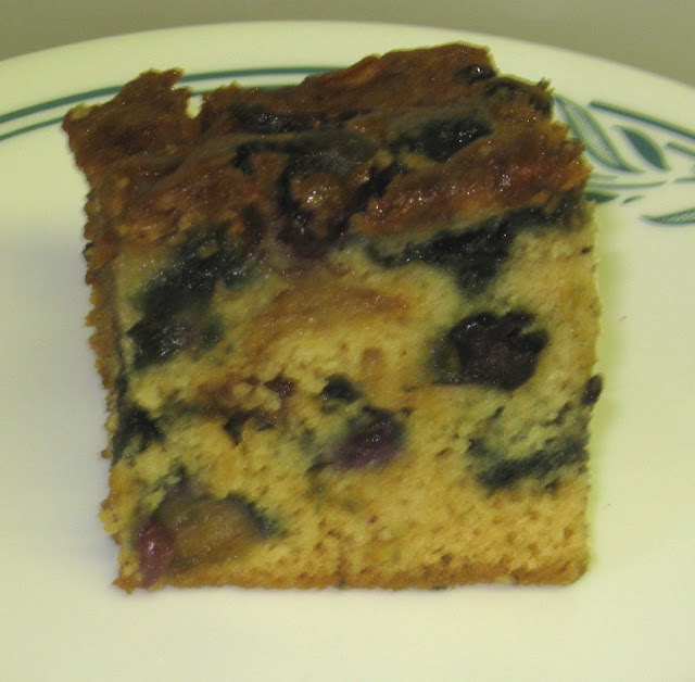 - Combine oil, sugar, cantaloupe and eggs, beat until smooth. Add flour, cinnamon and baking soda, mix until smooth. Fold in blueberries.