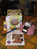 For awhile now I’ve been promising myself I’d learn to do 2 new crafts that I’ve always wanted to learn ~ stained glass windows and knitting. Well now I have no excuse not to do one of them.I came home today to this great big box on my porch and couldn’t remember ordering anything. By the time I parked and went in to let the dogs out I forgot about it. So late this evening when I went out to feed the deer I saw it and actually brought it in.