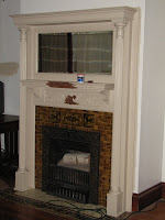 So we chose the colors. The walls will still be Oklahoma Wheat, but the fireplace was changed from the Burmese gold (way too yellow) to Caramel Latte which just sounds so yummy. It looks good too, really brings out the colors of the 115 year old tiles we are trying to preserve. It’ll look even better after the next coat. I can’t wait for the walls to get done and the living room back in one piece. With tonight’s snow storm, maybe we’ll just stay home tomorrow and paint the walls.