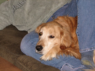My big yellow lab Buddy is the same way. He’s not content unless he is wedge into you somehow. Adorable photo!