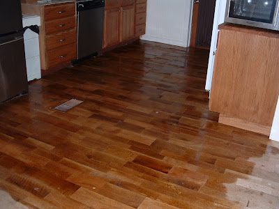 The floors are stained and need a final sanding before we move on to the existing hardwood floors to refinish.