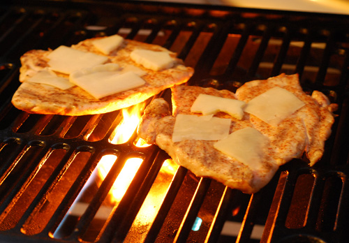 Flip the chicken and top with slices of white cheddar cheese. Cook for 4 minutes or until the chicken hits an internal temp of 160f. (It is hard to get a good internal temp on meat this thin without a Thermapen.)