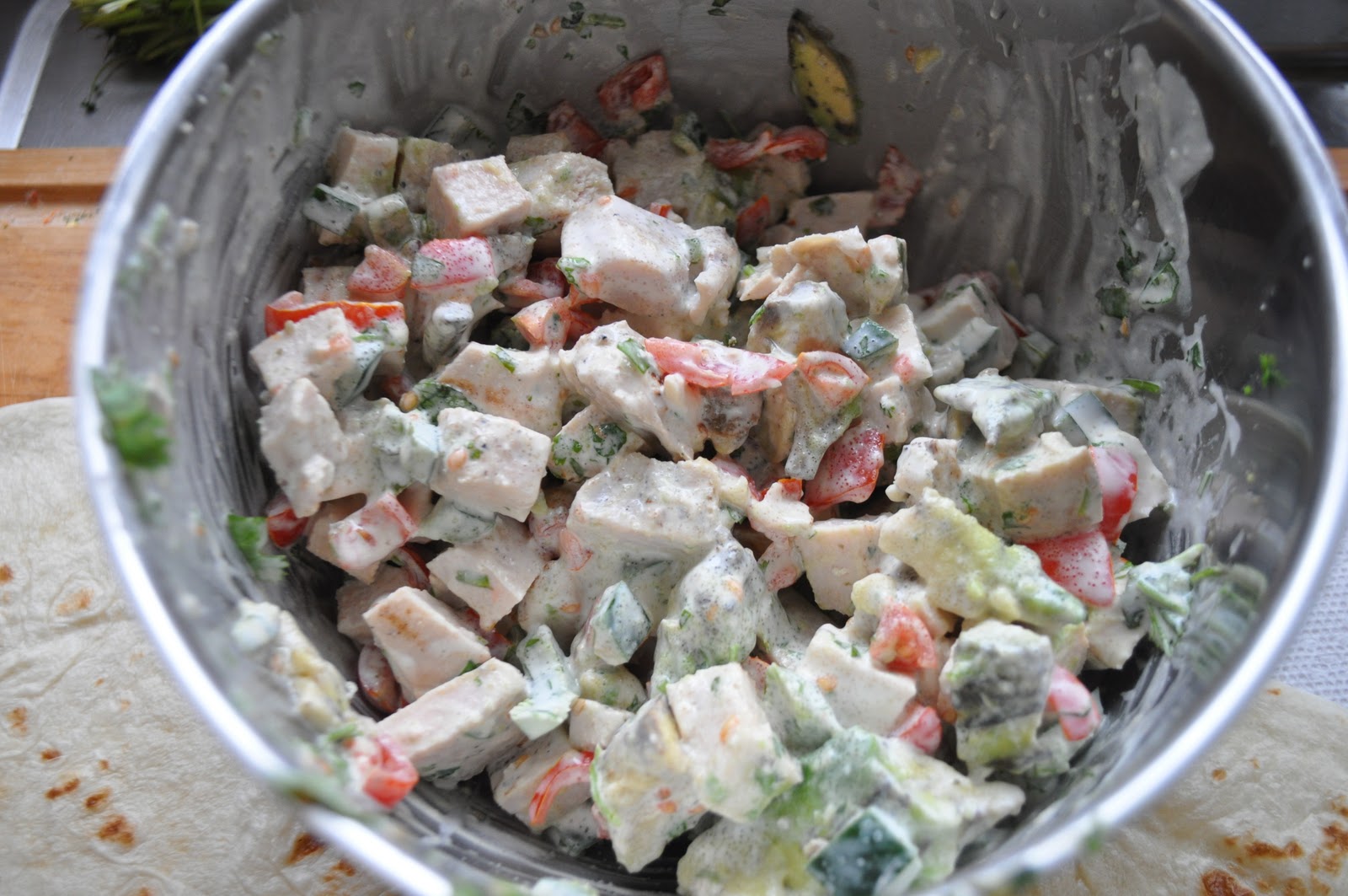 Directions: Combine the mayonnaise, sour cream, lime juice, jalapeno, chipotle peppers, and salt in large mixing bowl. Place the chicken, tomato, avocado, and cilantro in a bowl with the mayonnaise mixture and toss lightly to coat. Top each of the 6 tortillas evenly with the chicken mixture. Roll.