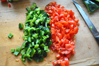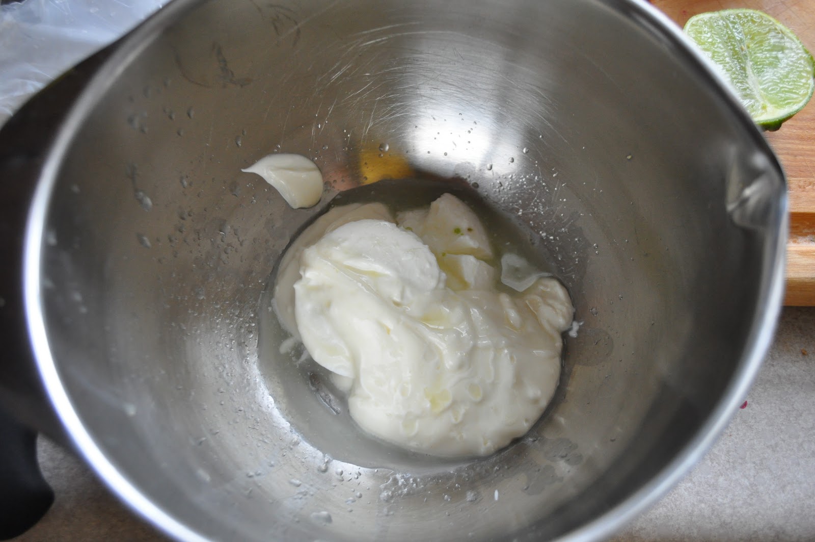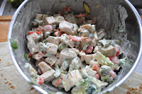 - Add the chicken, tomato, and pepper to the mayo/sour cream.