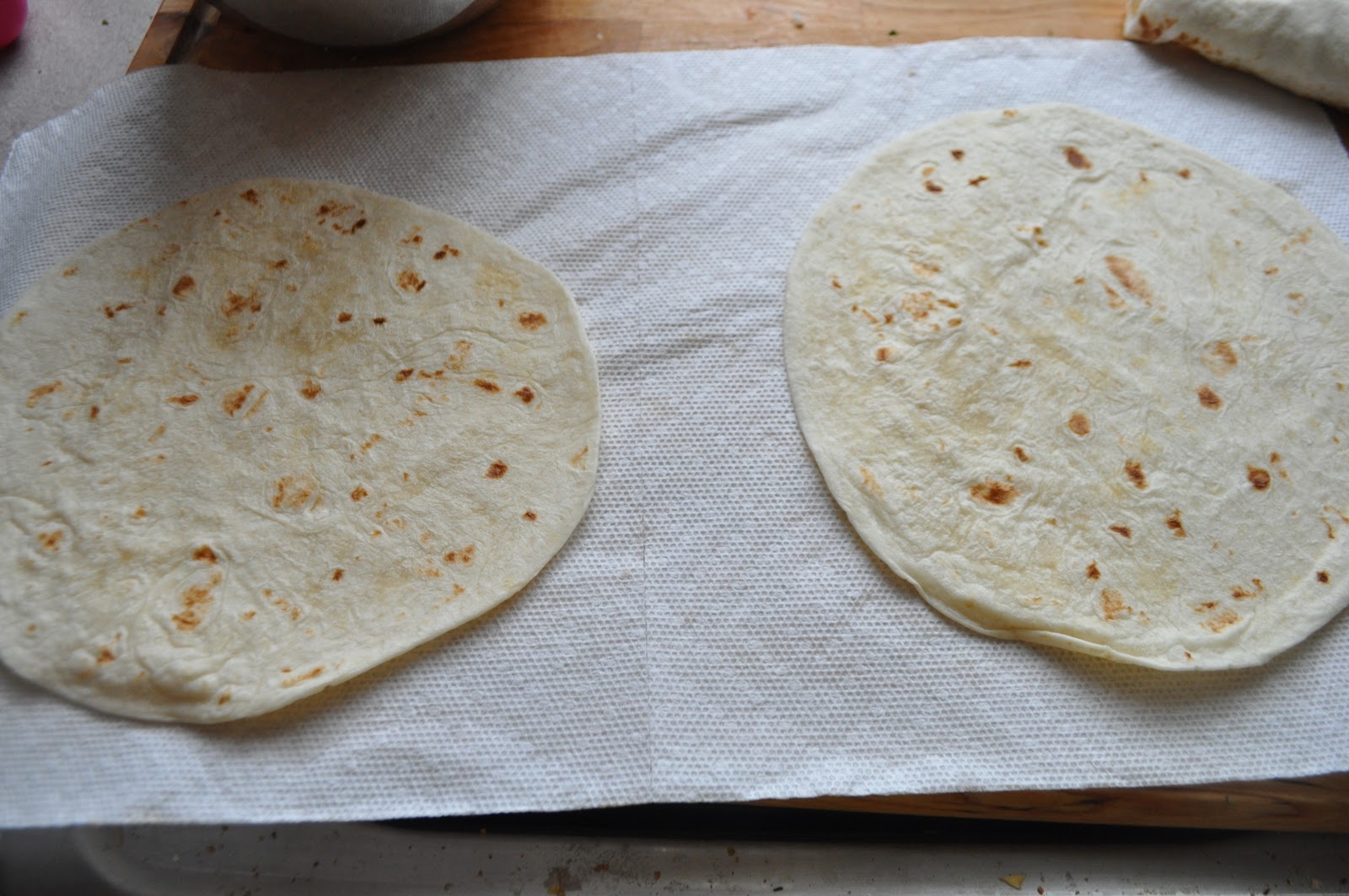 - Warm your tortillas. You can do this by putting two in two paper towels and microwave for 20-25 seconds.