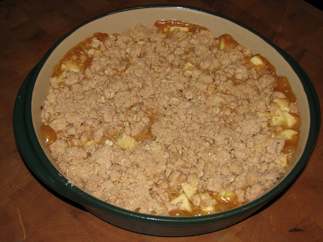 - In a large mixing bowl combine all CRISP ingredients and mix well. Pour into an un-greased stoneware pan.