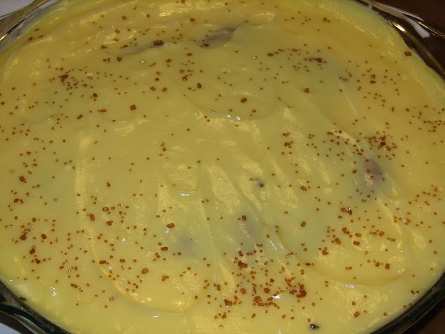 - Working over the pie shell, cut the bananas into 1/4-inch thick slices, letting them fall to cover the bottom. Spoon the rum custard over the bananas, smoothing the top. Refrigerate for 2 hours to set.