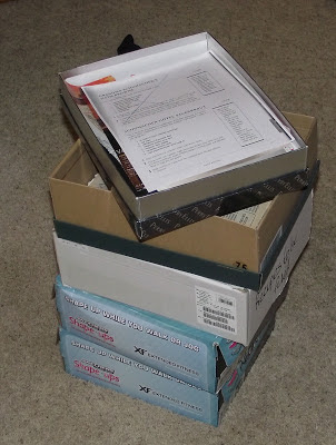I’ve been working real hard every evening on scanning in these boxes full of recipes and throwing away the actual papers.  Here is what I have left of that stack of boxes.  I love flash drives.  Thanks to my sister and brother-in-law for this great Christmas gift!