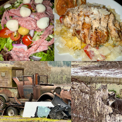 I had to laugh at these local barn cats. Their expressions were seriously questioning what I was looking at And guys like winter project cars up here, but this one is a serious multi year project. The food was from our Valentine’s lunch – Lemon ricotta chicken pasta and an Italian grinder salad.