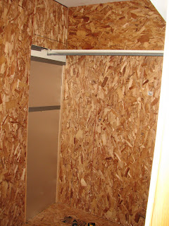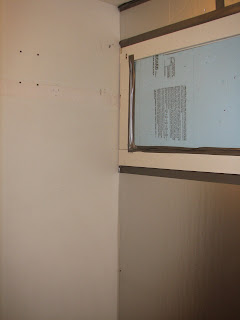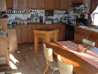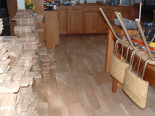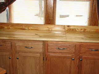 The kitchen cabinets & counter tops: We installed the last cabinet and its counter top. Then I stained the cabinet and sealed the counter top.