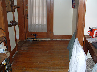 The above picture was taken a few days after we moved in, but before we pulled out the rotted carpet, removed the sun rotted sheers, added blinds and curtains.