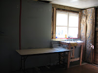 We eliminated a window (yeah, now there’s only 36 to go) and insulated the outside walls. The outside walls are 115 years old though, so we’re adding a layer of foam board moisture insulation before the actual walls. Next we need to raise the old kitchen floor to meet the new kitchen floor (a contractor nightmare caused this issue) and then we’ll muddle through the winter before putting down a floor. We’re still debating between a slate look tile or oak plank. Most people say the oak plank automatically, but the rest of the house is a bird’s eye maple so we’re just not sure what the overall decision will be.