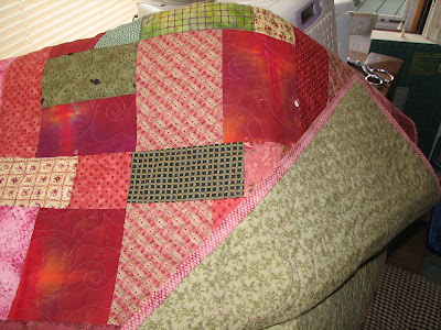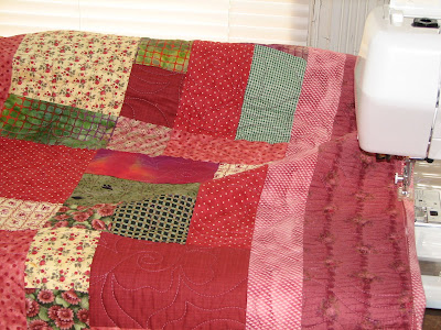 Hubby has been making me take Sundays off and do just what I want. He’s worried about me working too much. I guess I do have a tendency to over-do so I appreciate his worrying about me. So last Sunday I got this far on the wall quilt. I’m still thinking about another border before backing and binding it, but just can’t decide.