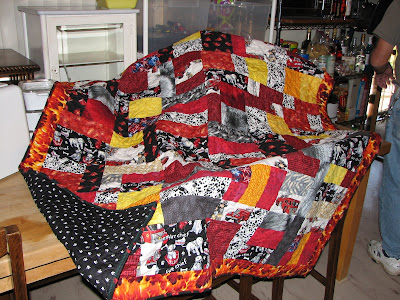 These are my most recent quilts. I was really hoping to get them finished and others started this past winter, but the “new” house had other ideas. The pink and green is for my mom. The red, white and blue for my aunt and uncle and the orange and yellow is a “copy” of one I made my cousin so we’d have matching quilts. They all just need binding, so maybe I’ll finish them yet this month. The last one is fire themed and I made it for my stepson last Christmas which was also his birthday. The backing was doggy paw prints that matched the Dalmations on the front.