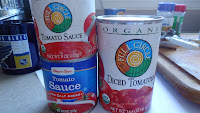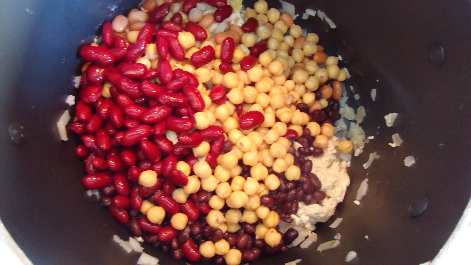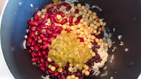 - Put the ground chicken in a Dutch oven to brown. Throw the onions and garlic in with the chicken.