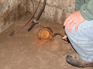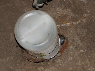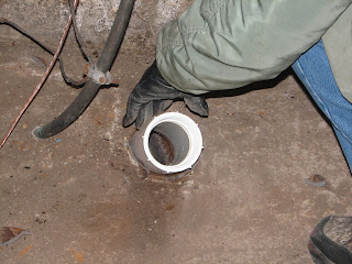 The Basement drain clean out: This is one of the items the previous owner was supposed to take care of, but failed to do. At some point someone couldn’t get the plug off and they broke a hole into the rear of the pipe. So we hired a plumber to give us a hand. He melted out the old lead and was able to break off the old cap. The inside was then cleaned out and a new PVC pipe and cap were glued together and sealed in place to prevent further sewer gas from escaping.