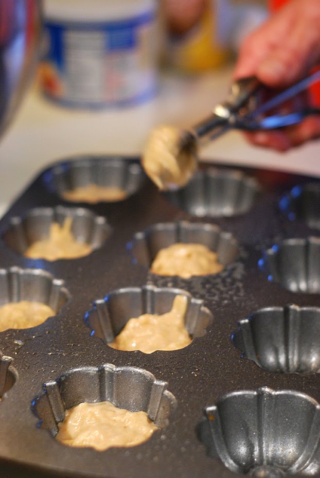 Preheat your oven to 350f. Using a greased mini bundt pan (or a cup cake tin), fill each cup a little over half full with the batter.