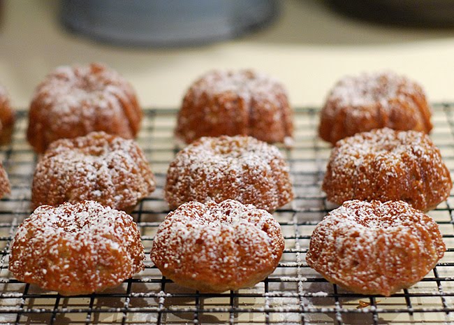 If you follow my blog at Nibble Me This, you know I am NOT a sweets kind of guy. I don’t eat much pie or cake. These little beauties were good and I MIGHT have taken one or four before Alexis started packing them up 🙂 But in my defense, you get to pop a whole (mini) bundt cake into your mouth, how could I resist that?