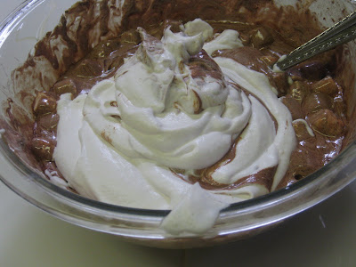 The base (top while it was cooking, the part that was above the lip of the second baking dish) browned nicely. It has a bit of a crunch and is almost all cake.